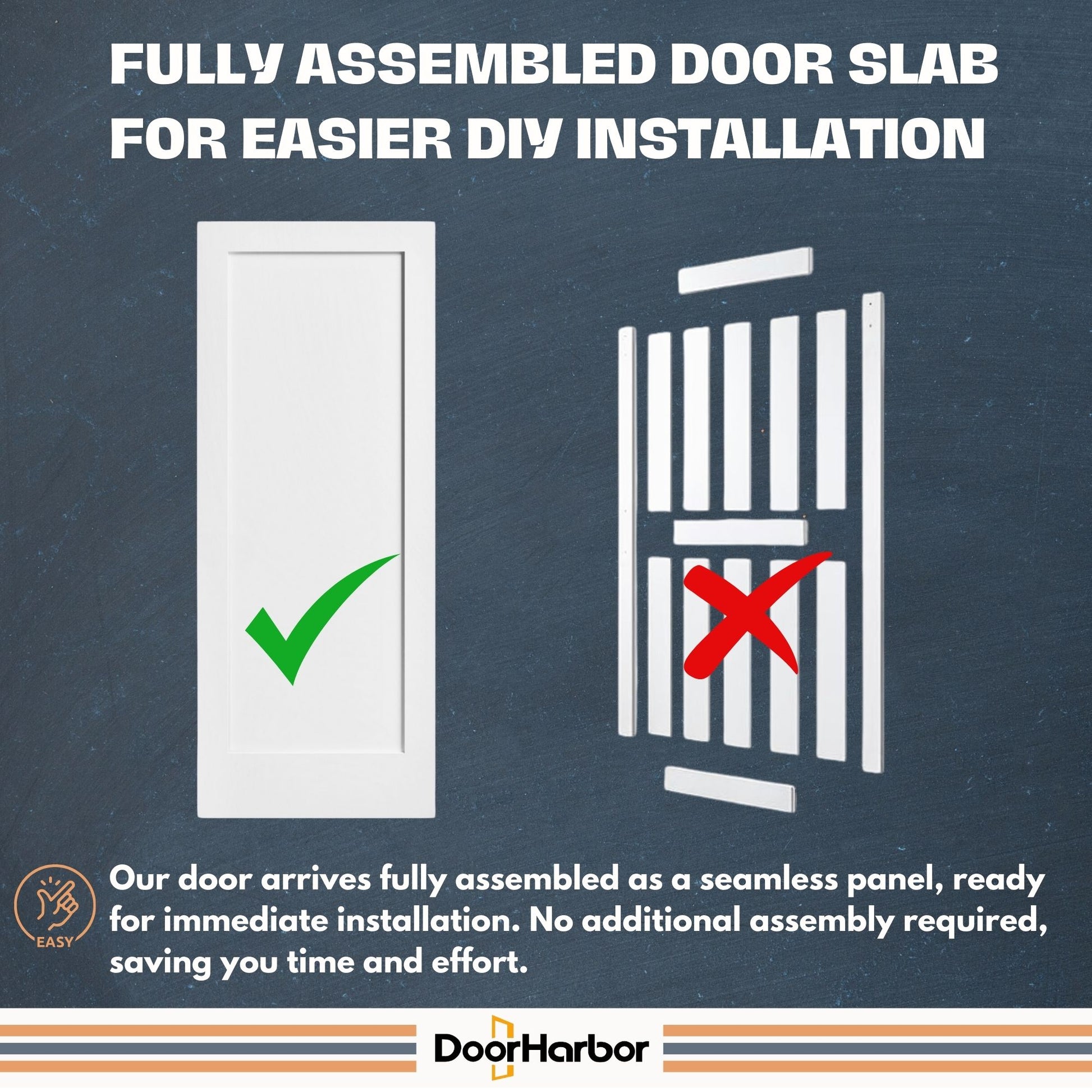 - PRE-ASSEMBLED DOOR & ONE-PIECE RAIL FOR FAST & EASY INSTALLATION. The door arrives double primed and fully assembled, ready to paint and mount, with no need for sanding or priming. Combined with a seamless one-piece track and clear step-by-step instructions, this kit simplifies installation and reduces setup time. Whether you’re a DIY beginner or a seasoned installer, you’ll enjoy a smooth, hassle-free process.