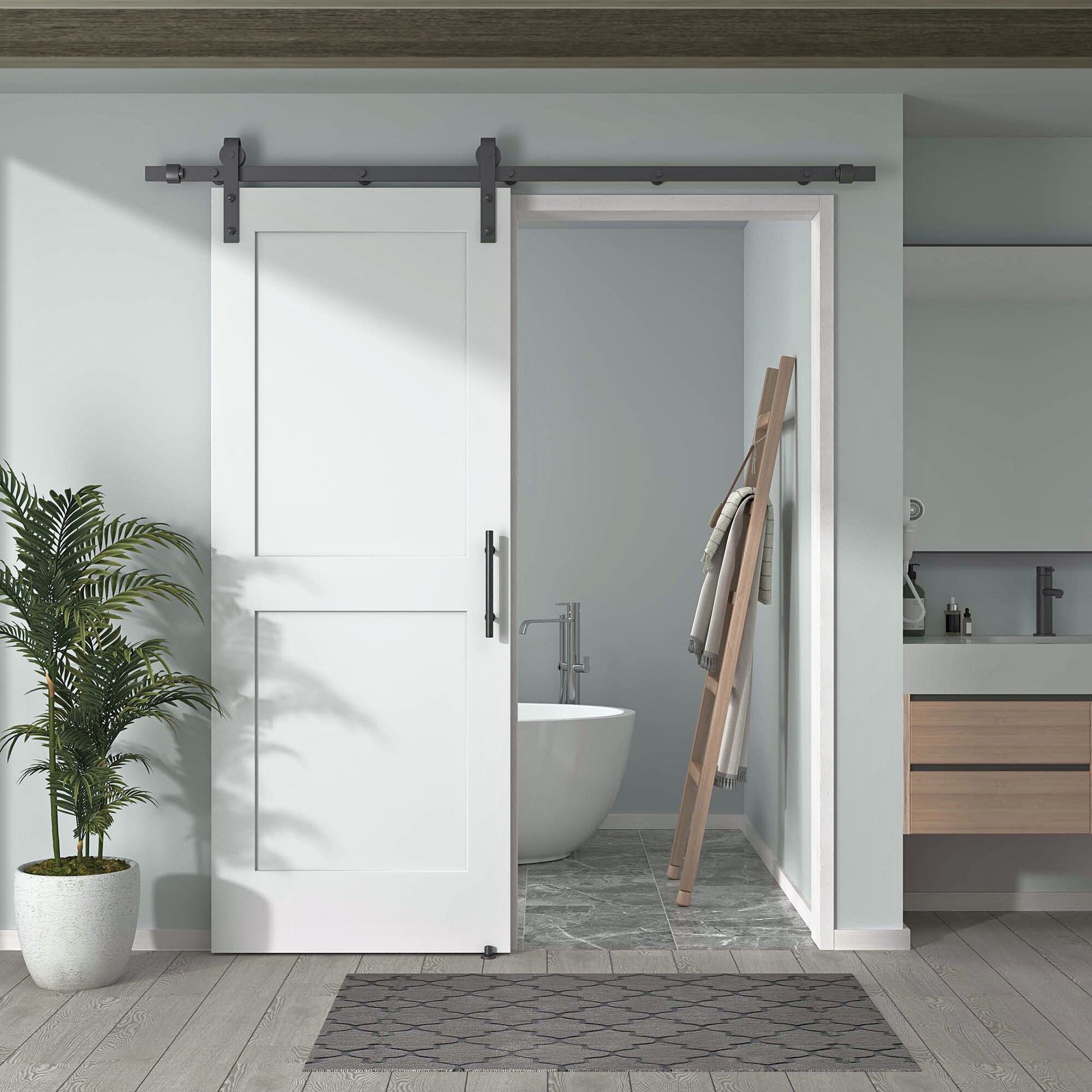 - PRE-ASSEMBLED DOOR & ONE-PIECE RAIL FOR FAST & EASY INSTALLATION. The door arrives double primed and fully assembled, ready to paint and mount, with no need for sanding or priming. Combined with a seamless one-piece track and clear step-by-step instructions, this kit simplifies installation and reduces setup time. Whether you’re a DIY beginner or a seasoned installer, you’ll enjoy a smooth, hassle-free process.