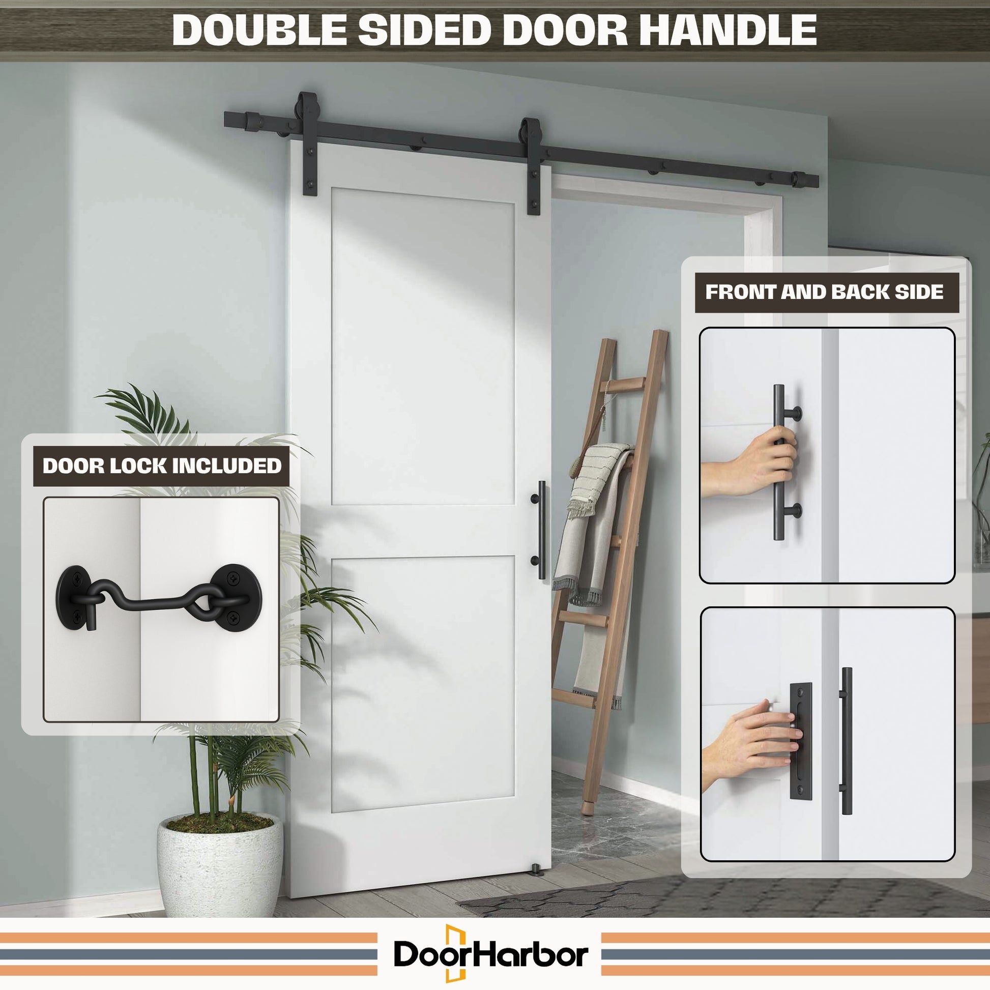 - BUILT-IN SAFETY & PROTECTIVE PACKAGING FOR PEACE OF MIND. From installation to daily use, this barn door set is designed with your safety in mind. Anti-jump pads, floor guides, and door stoppers keep the door securely on track, preventing accidents and hard slams. Plus, each door panel ships in reinforced packaging to minimize transit damage. Ensuring it arrives in perfect condition, ready for reliable and long-term performance.