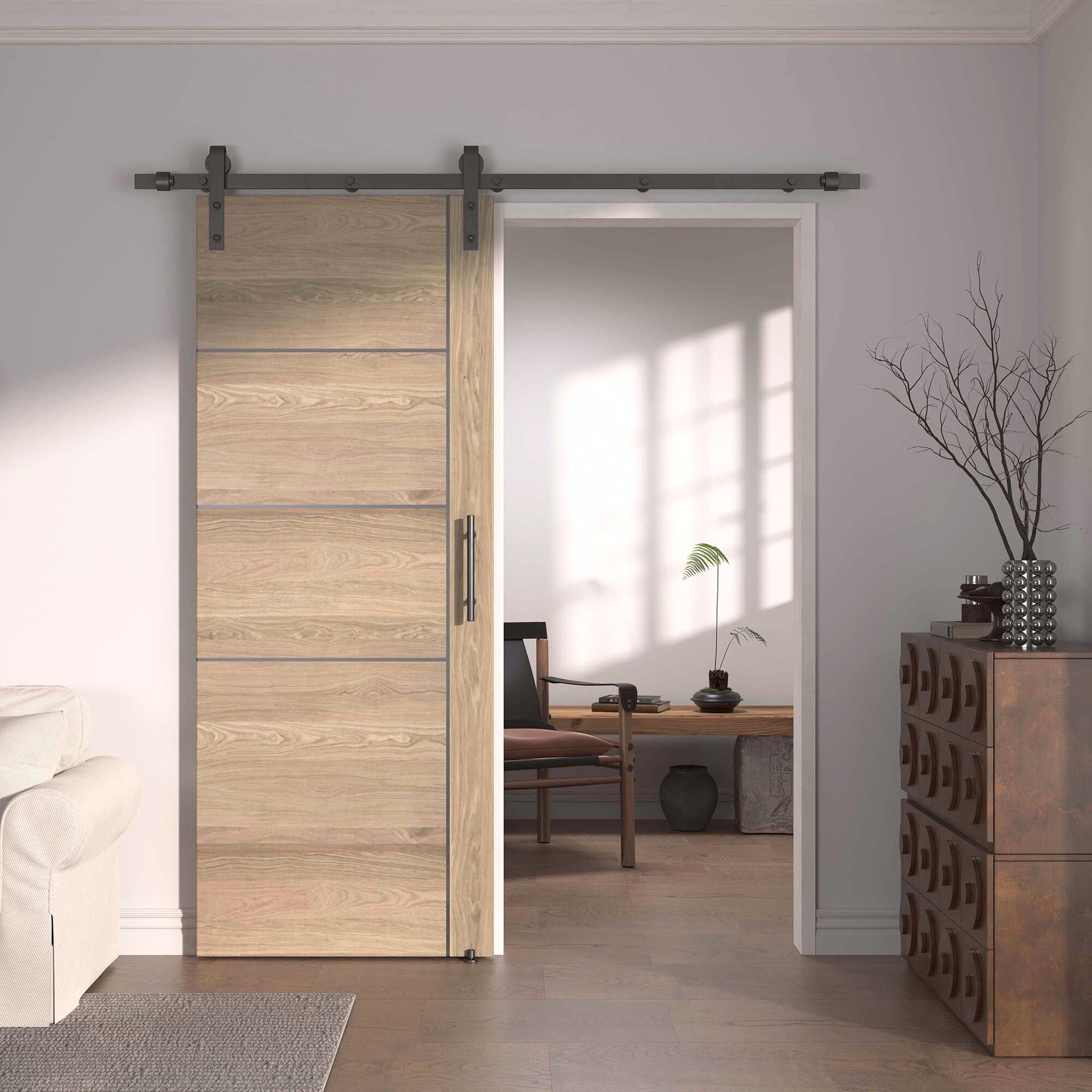 - STYLE MEETS FUNCTION, A STATEMENT PIECE THAT SAVES SPACE. This sliding barn door set combines timeless style with everyday practicality. The primed interior door offers a clean, minimalist look that complements both modern and farmhouse interiors. Sliding along the wall instead of swinging open, it saves valuable floor space in bedrooms, closets, pantries, and more. Making your home feel larger, more organized, and beautifully refined.