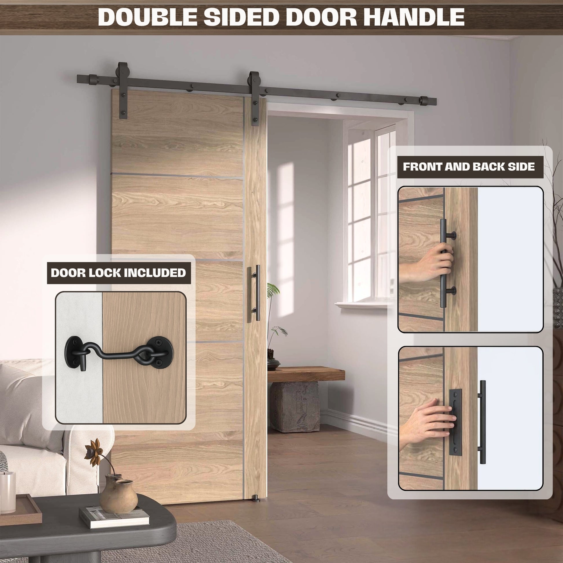 - BUILT-IN SAFETY & PROTECTIVE PACKAGING FOR PEACE OF MIND. From installation to daily use, this barn door set is designed with your safety in mind. Anti-jump pads, floor guides, and door stoppers keep the door securely on track, preventing accidents and hard slams. Plus, each door panel ships in reinforced packaging to minimize transit damage. Ensuring it arrives in perfect condition, ready for reliable and long-term performance.