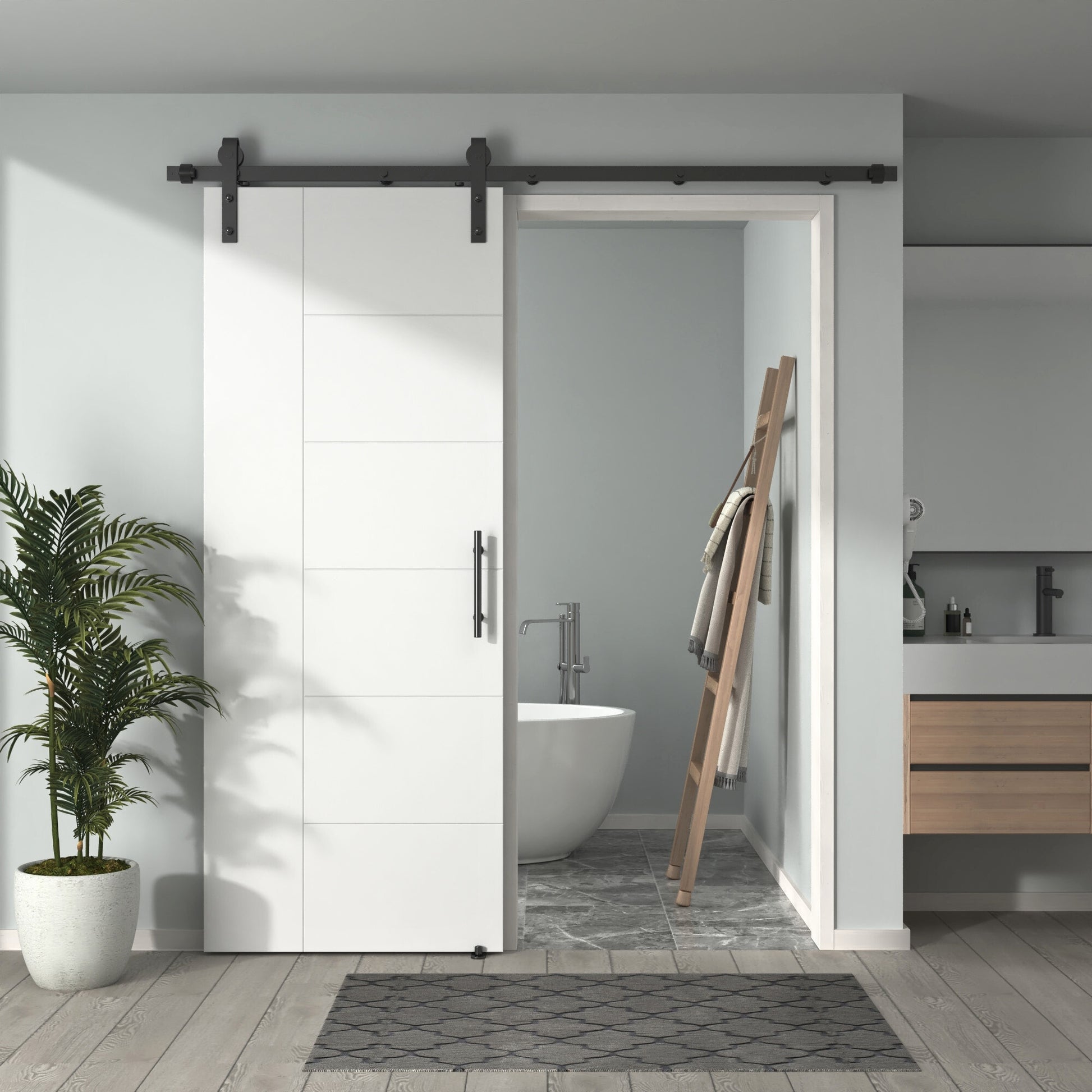- STYLE MEETS FUNCTION, A STATEMENT PIECE THAT SAVES SPACE. This sliding barn door set combines timeless style with everyday practicality. The primed interior door offers a clean, minimalist look that complements both modern and farmhouse interiors. Sliding along the wall instead of swinging open, it saves valuable floor space in bedrooms, closets, pantries, and more. Making your home feel larger, more organized, and beautifully refined.
