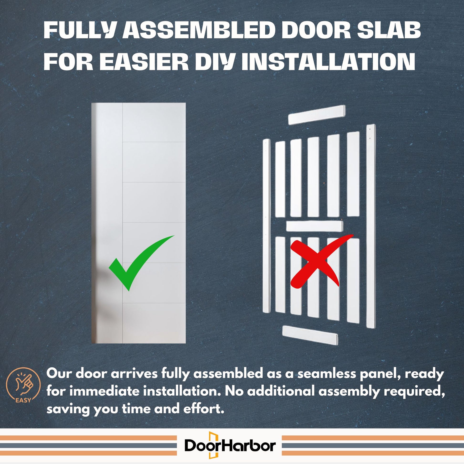 - PRE-ASSEMBLED DOOR & ONE-PIECE RAIL FOR FAST & EASY INSTALLATION. The door arrives double primed and fully assembled, ready to paint and mount, with no need for sanding or priming. Combined with a seamless one-piece track and clear step-by-step instructions, this kit simplifies installation and reduces setup time. Whether you’re a DIY beginner or a seasoned installer, you’ll enjoy a smooth, hassle-free process.